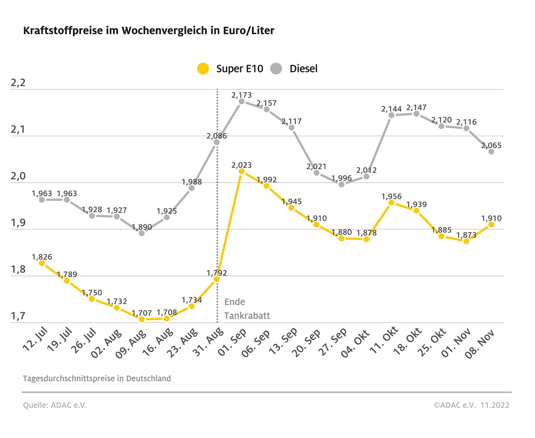 Kraftstoffpreise im Wochenvergleich