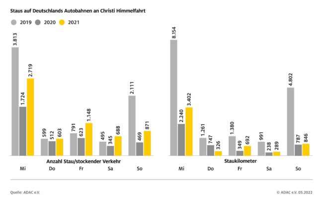 ADAC Langes Wochenende: Ausflugsfahrten enden im Stau – ADAC Stauprognose für 25. bis 29. Mai (Christi Himmelfahrt) – Hohe Staugefahr am Mittwoch- und Sonntagnachmittag