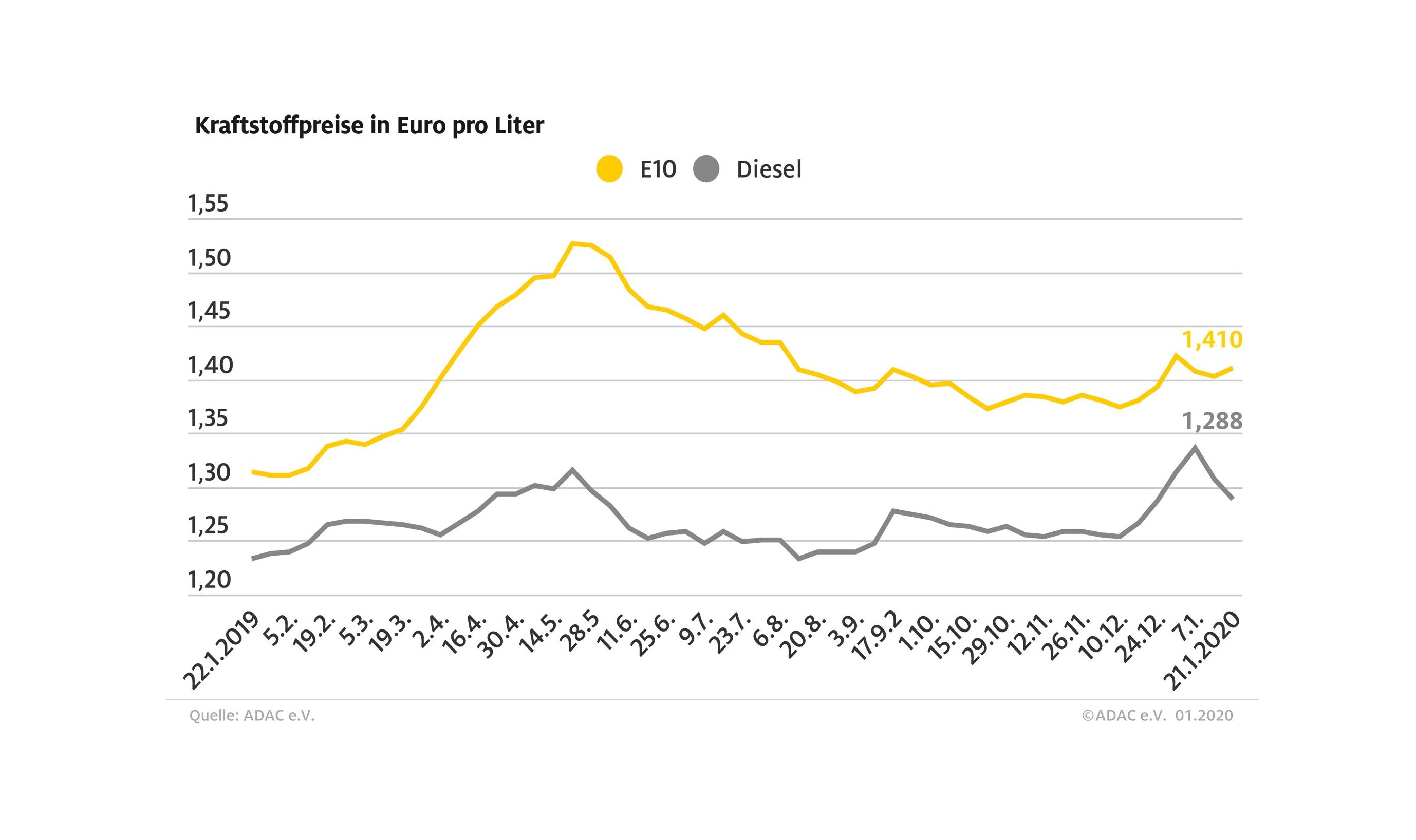 Autofahrer müssen für Benzin an den Tankstellen mehr als in der Vorwoche bezahlen. Diesel hingegen wurde kräftig billiger. Laut aktueller Auswertung des ADAC kostet ein Liter Super E10 im Bundesdurchschnitt 1,410 Euro, das sind 0,7 Cent mehr als in der Vorwoche. Diesel verbilligte sich um 1,9 Cent auf 1,288 Euro je Liter.