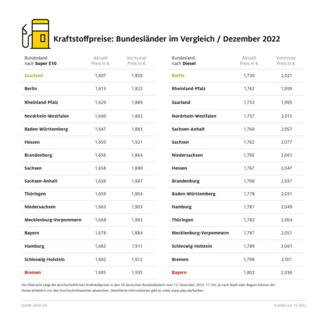 ADAC: Spritpreise geben erneut nach – Preisdifferenz zwischen Benzin und Diesel vergrößert sich