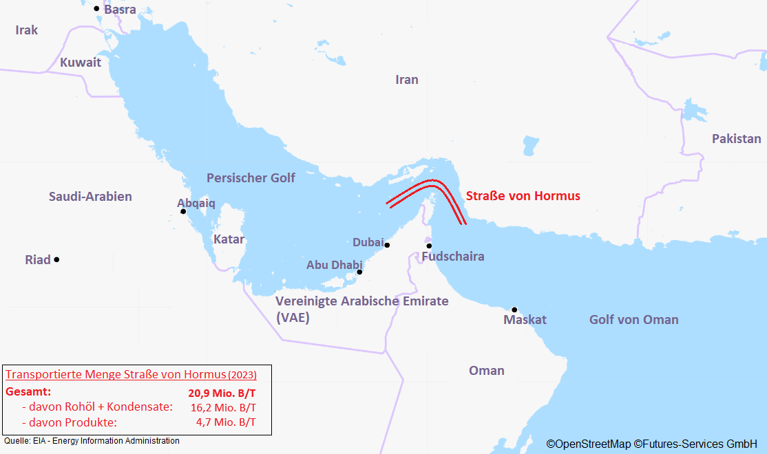 Zur Stunde ist unklar, ob der Iran tatsächlich schon erste Unterwasserminen in der Region gelegt hat oder nicht. Sicher ist, dass eine solche Maßnahme für den globalen Ölhandel eine katastrophale Nachricht wäre, denn sie würde die Passierbarkeit der Straße von Hormus auf unbestimmte Zeit extrem gefährlich machen. Selbst im Falle einer Kapitulation des Iran wäre die Wiederaufnahme der Exporte durch die Wasserstraße damit erschwert und die Risikoprämie würde erhöht bleiben.