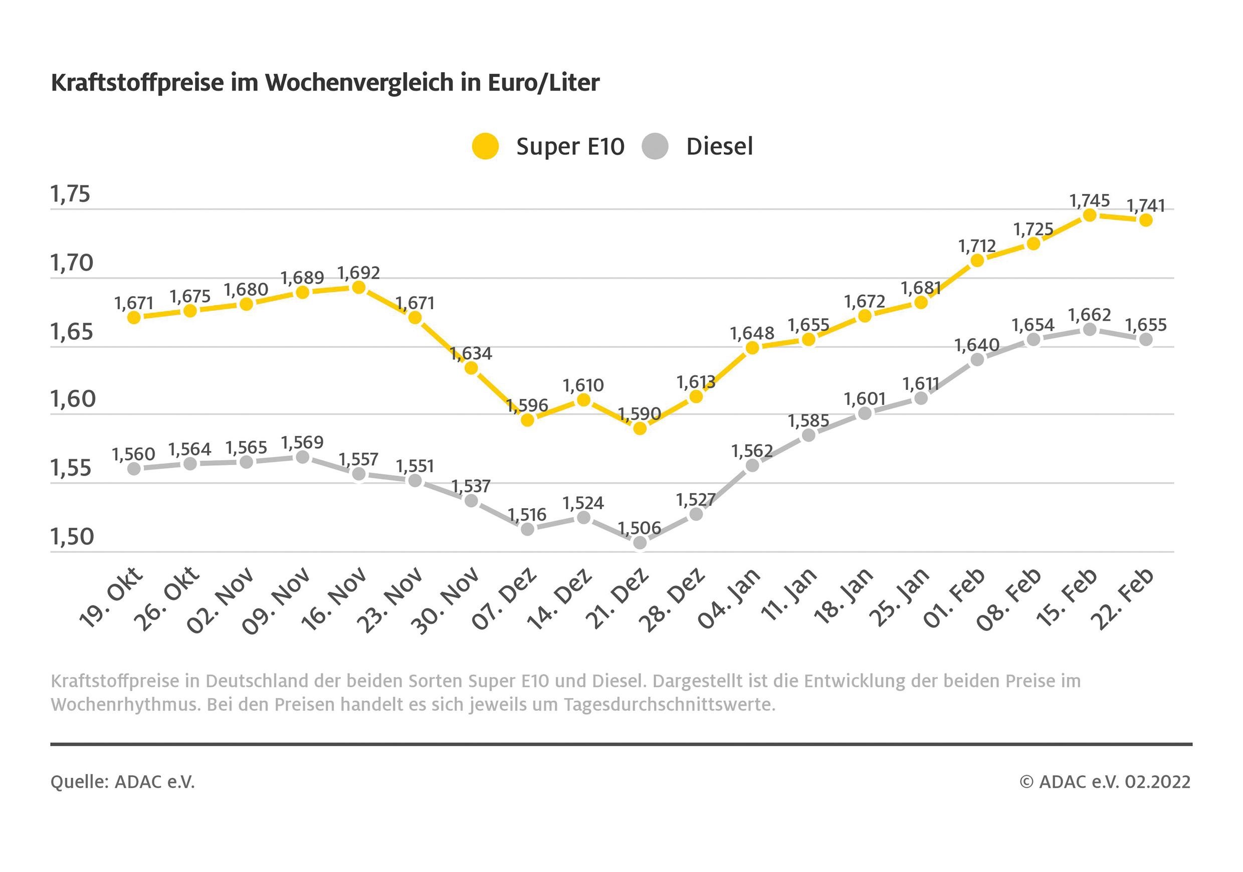 Kraftstoffpreise im Wochenvergleich Quelle: ADAC e.V.