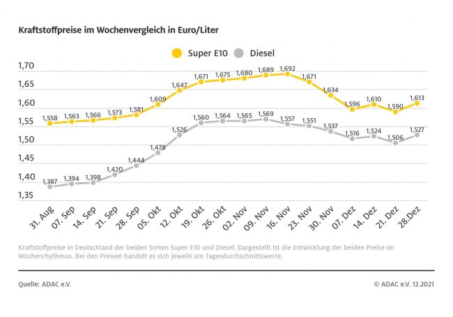 Zum Jahresbeginn steigen die Spritpreise – ADAC: Erhöhung von CO2-Abgabe und Rohölnotierung verteuern das Tanken