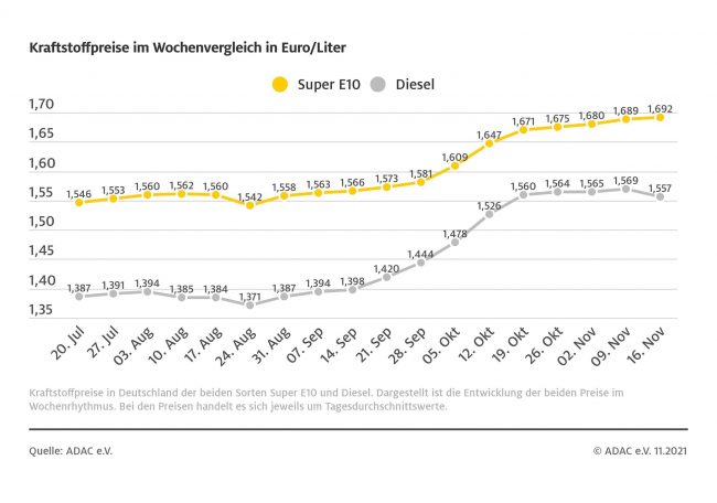München (ots) Während ein Liter Super E10 im bundesweiten Mittel um 0,3 Cent teurer wird und an den Zapfsäulen 1,692 Euro fällig werden, ist der Preisanstieg beim Diesel vorerst gestoppt. Das ermittelt der ADAC in seinem Wochenvergleich der Kraftstoffpreise und verzeichnet im Bundesschnitt einen Rückgang von 1,2 Cent auf 1,557 Euro je Liter Diesel. Somit…