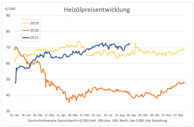 Auch in dieser Woche sind die Heizölpreise im Durchschnitt wieder teurer geworden. Nach wie vor stützen die steigenden Rohölpreise das Preisniveau im Inland und 100 Liter Heizöl kosten Anfang September fast so viel wie an den Spitzentagen im Juli. Im Vergleich zur Vorwoche kosten 100 Liter Heizöl im bundesweiten Durchschnitt heute etwa 88 Cent…