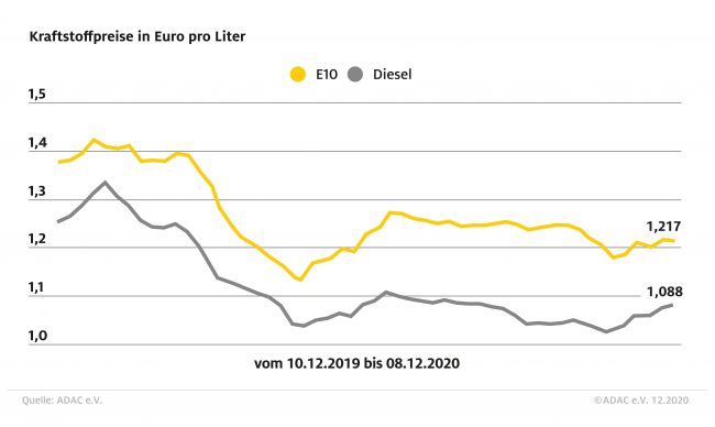 Benzin etwas billiger, Diesel teurer – ADAC: Preise für beide Sorten nähern sich um gut einen Cent an