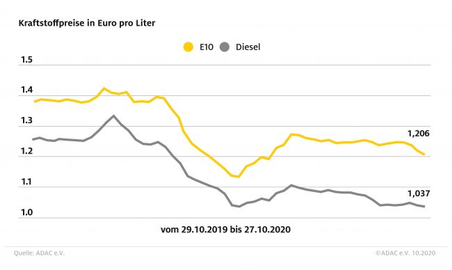 München (ots) – Die Kraftstoffpreise gehen im Bundesvergleich weiter zurück. Das ergibt die aktuelle Marktauswertung des ADAC. Demnach kostet ein Liter Super E10 derzeit im Schnitt 1,206 Euro. Dies entspricht einem Rückgang von 1,4 Cent im Vergleich zur Vorwoche. Auch beim Diesel ist in dieser Woche erneut ein Rückgang zu verzeichnen. Für einen Liter zahlen Verbraucher…