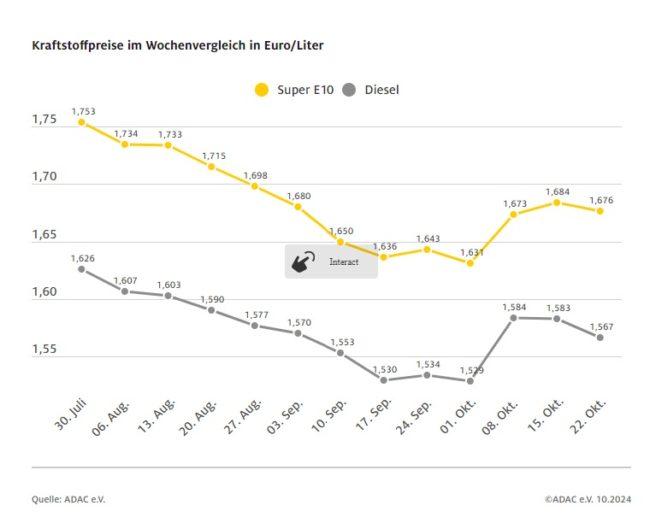 München (ots)Nach mehreren Monaten rückläufiger Preise mussten die Autofahrerinnen und Autofahrer im Oktober wieder etwas mehr für Sprit bezahlen als im Vormonat. Die aktuelle ADAC Auswertung der Kraftstoffpreise im Oktober zeigt, dass ein Liter Super E10 im Mittel 1,672 Euro kostete. Gegenüber September war dies ein Plus von 2,2 Cent. Noch ein wenig stärker hat sich…