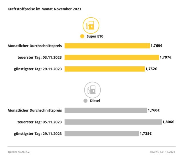ADAC: Tanken im November erneut günstiger – Benzin 4,4 Cent billiger als im Oktober, Diesel 5,9 Cent – 2023 wird dennoch zweitteuerstes Tankjahr aller Zeiten